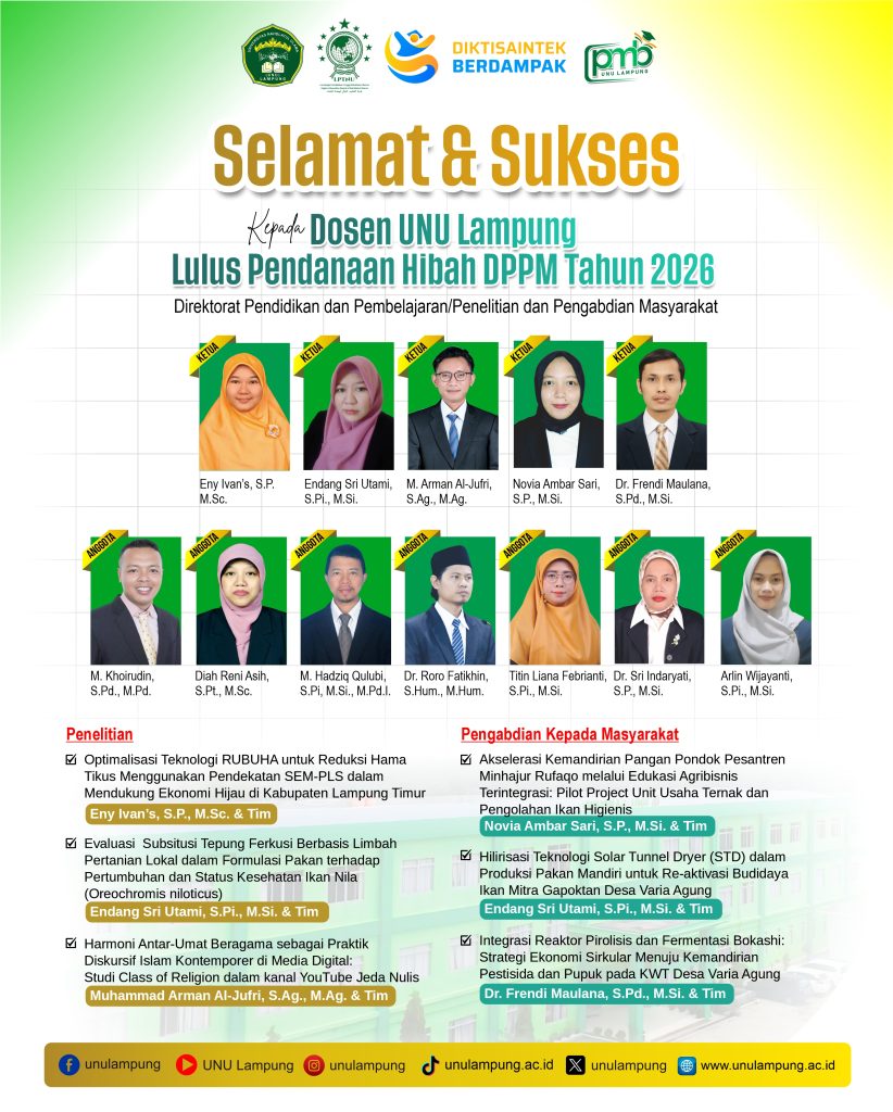 Dosen UNU Lampung Raih Pendanaan Hibah DPPM Tahun 2026, Hadirkan Program Inovatif Berbasis Riset dan Pemberdayaan Masyarakat
